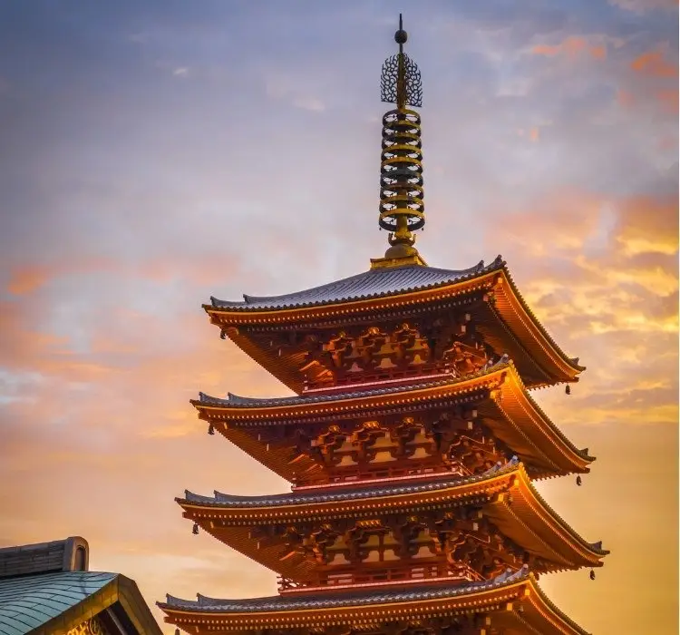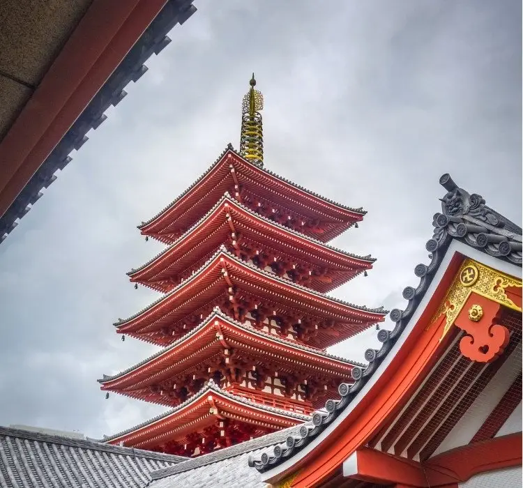 সেনসো-জিতে অবস্থিত পাঁচতলা প্যাগোডাটি কেবল একটি স্থাপত্য বিস্ময় নয় বরং একটি আধ্যাত্মিক প্রতীক। প্রতিটি স্তর বৌদ্ধ দর্শনের পাঁচটি উপাদানের একটির প্রতিনিধিত্ব করে: পৃথিবী, জল, আগুন, বাতাস এবং আকাশ। জাপানের অন্যতম উঁচু এই প্যাগোডাটিতে বুদ্ধের ধ্বংসাবশেষ রয়েছে বলে বিশ্বাস করা হয়, যা এটিকে মন্দির কমপ্লেক্সের মধ্যে একটি সম্মানিত কাঠামো করে তোলে। যদিও দর্শনার্থীরা প্রবেশ করতে পারবেন না, প্যাগোডাটি মন্দিরের গভীর আধ্যাত্মিক তাৎপর্যের একটি দৃশ্যমান স্মারক হিসেবে দাঁড়িয়ে আছে।
