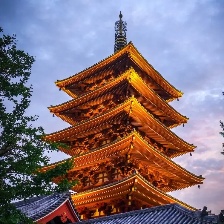 সেনসো-জিতে অবস্থিত পাঁচতলা প্যাগোডাটি কেবল একটি স্থাপত্য বিস্ময় নয় বরং একটি আধ্যাত্মিক প্রতীক। প্রতিটি স্তর বৌদ্ধ দর্শনের পাঁচটি উপাদানের একটির প্রতিনিধিত্ব করে: পৃথিবী, জল, আগুন, বাতাস এবং আকাশ। জাপানের অন্যতম উঁচু এই প্যাগোডাটিতে বুদ্ধের ধ্বংসাবশেষ রয়েছে বলে বিশ্বাস করা হয়, যা এটিকে মন্দির কমপ্লেক্সের মধ্যে একটি সম্মানিত কাঠামো করে তোলে। যদিও দর্শনার্থীরা প্রবেশ করতে পারবেন না, প্যাগোডাটি মন্দিরের গভীর আধ্যাত্মিক তাৎপর্যের একটি দৃশ্যমান স্মারক হিসেবে দাঁড়িয়ে আছে।