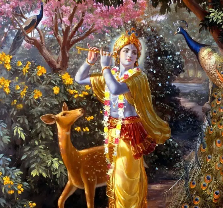 A serene island accessible by boat, believed to be the actual residence of Lord Krishna.