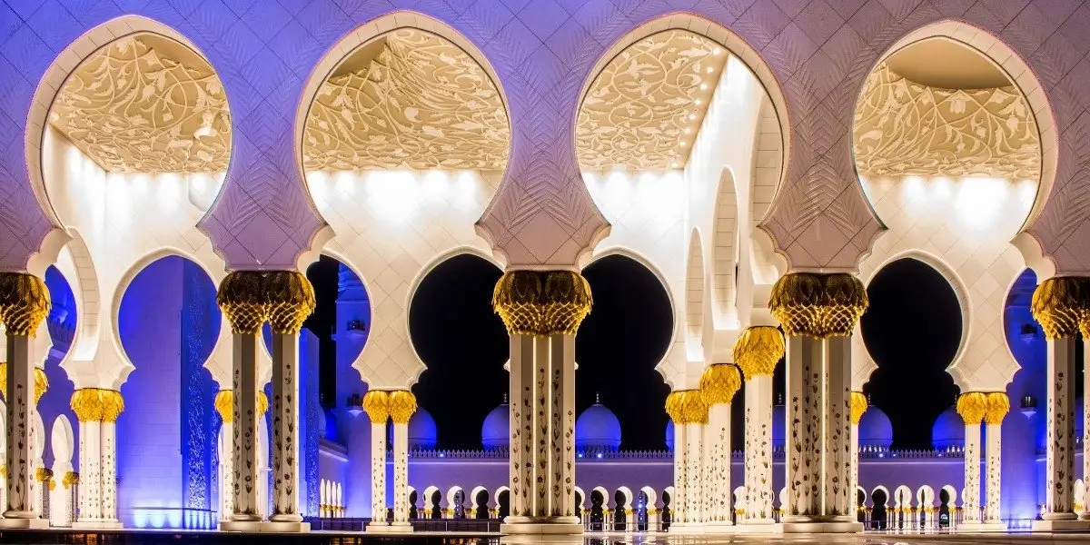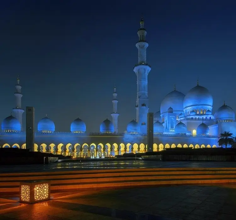 谢赫扎耶德大清真寺最迷人的特色之一,是其独特的灯光系统,其设计旨在反映月相的变化。夜幕降临,清真寺的白色大理石外墙沐浴在柔和的蓝色和淡紫色光晕中,营造出宁静祥和、超凡脱俗的氛围。这种夜间变幻不仅仅是视觉盛宴,也象征性地提醒着人们农历在伊斯兰传统中的重要性。灯光会根据月相的变化而变亮或变暗,呼应着清真寺与自然和神灵韵律的深厚联系。